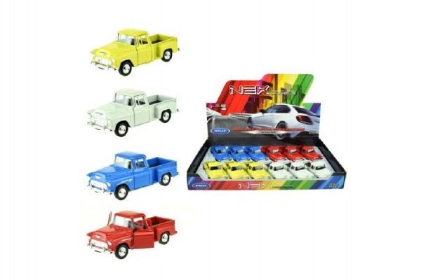 Auto Welly 1955 Chevrolet Stepside kov 12cm asst 4 barvy volný chod 12ks v boxu