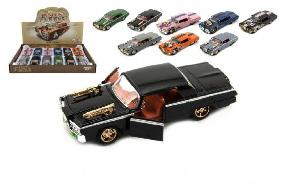 Auto veterán s kulometem kov/plast 13cm asst mix barev na zpětné natažení 12ks v boxu