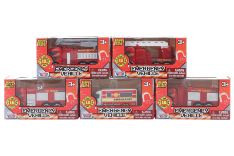 Auto hasičské kovové o velikosti cca 7 x 4 x 4 cm (dle druhu). Rozměry balení cca 10 x 6,5 x 5 cm. Věk 3+