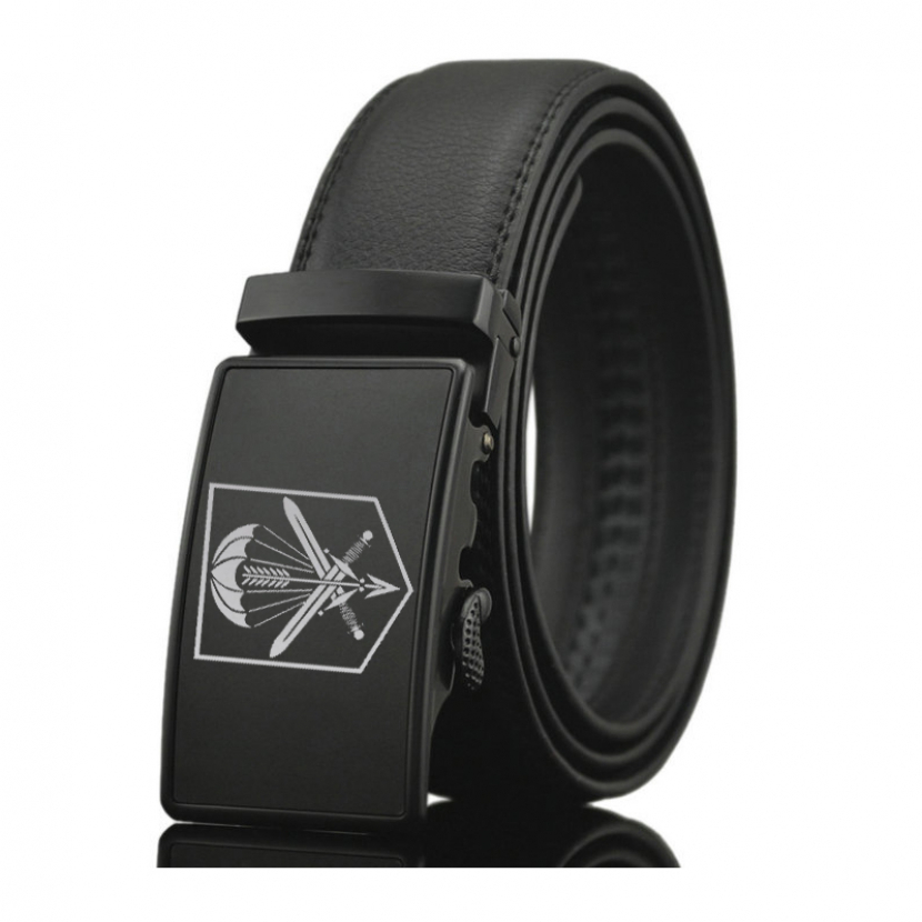 Opasek je vyroben z 100% pravé hovězí kůže, což zaručuje dlouhou životnost a odolnost proti opotřebení. Jeho design je doplněn pevnou kovovou sponou s černým eloxovaným povrchem a gravírovaným motivem, který mu dodává osobitý styl. Díky unikátnímu systému zapínání se nemusíte obávat vytahaných nebo poškozených dírek, což výrazně prodlužuje využitelnost opasku.