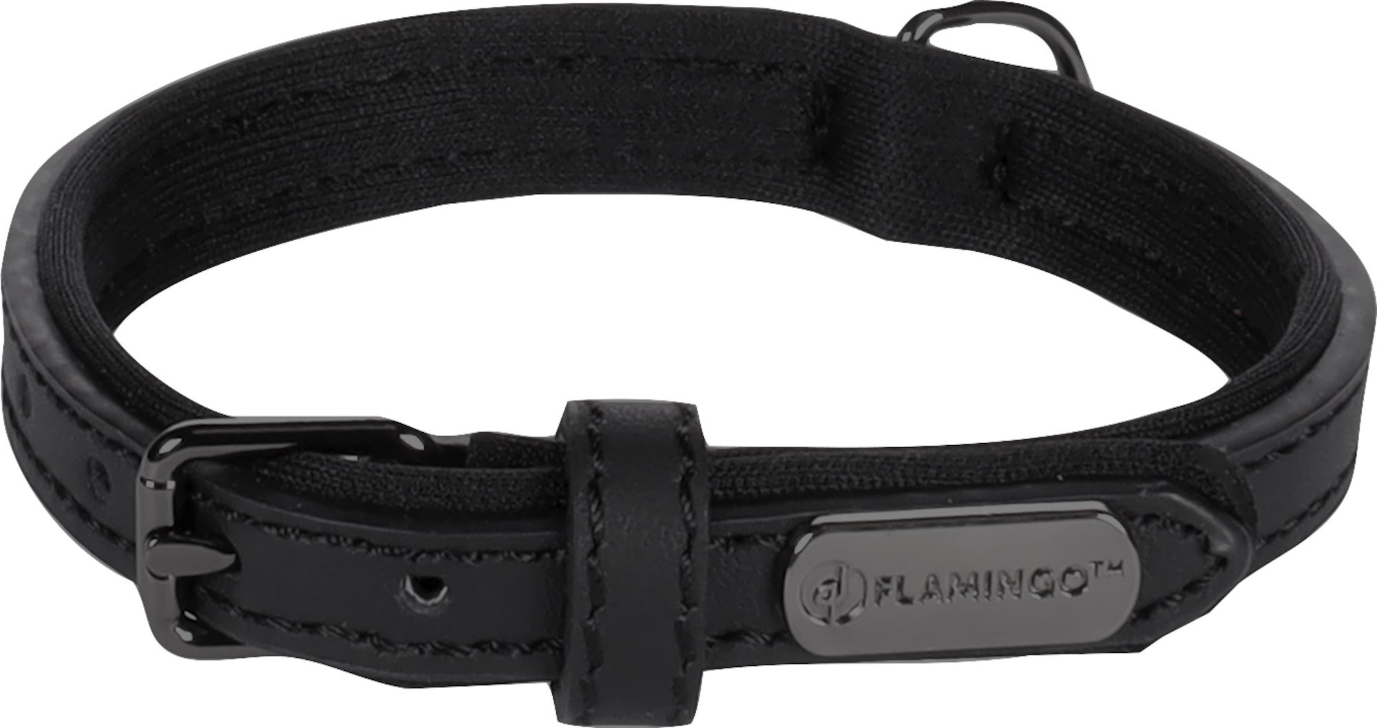Flamingo Binti Kožený obojek s neoprenem Černá XS