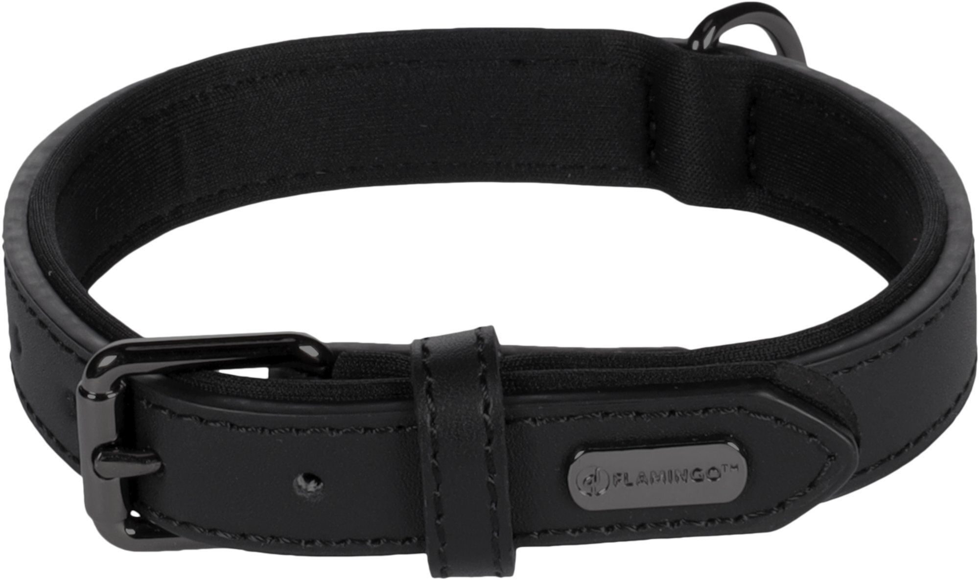 Flamingo Binti Kožený obojek s neoprenem Černá S/M
