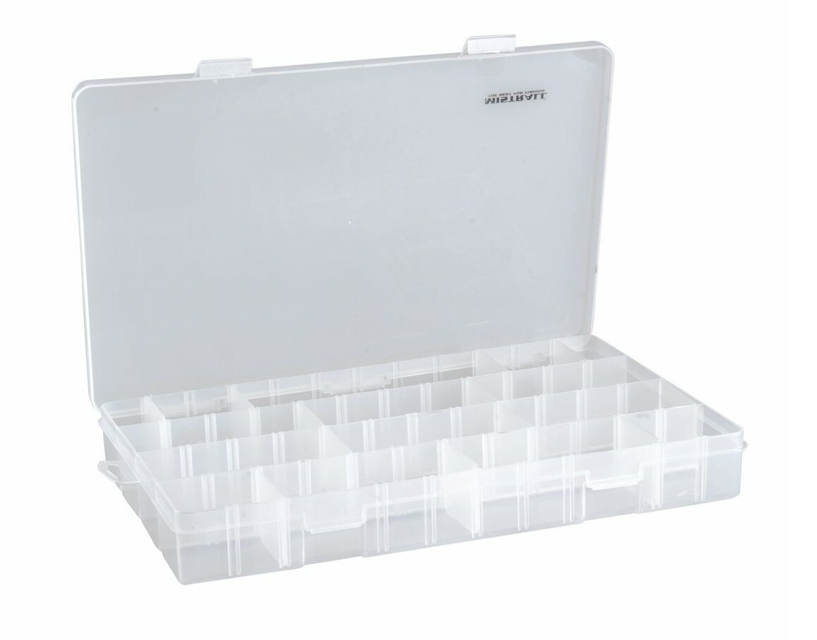 Těchto krabiček není nikdy dost. Používají se na olůvka, na háčky, na obratlíky a další bižuterii. Krabička je vyrobena z tvrzeného plastu, proto se nemusíte bát, že by vám v tašce praskla. U vody většinou není čas na složité hledání drobných věcí a obzvláště ve chvílích, kdy jsou ryby při chuti a vy máte záběr za záběrem, oceníte, že při převazování strávíte minimum času při výběru háčku či olůvka, které budete mít přehledně uložené.