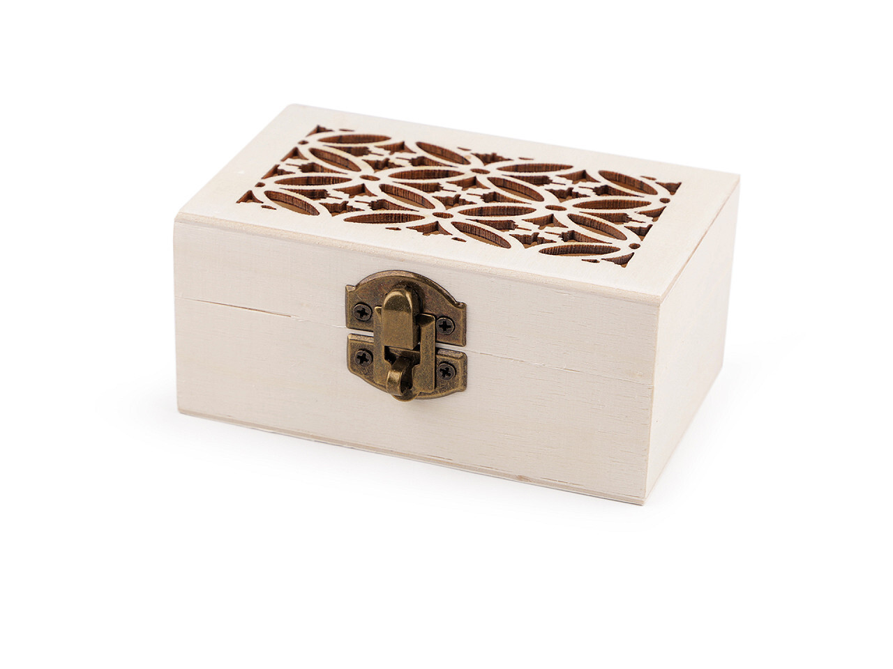 Malou dřevěnou krabičku s vyřezávaným odklápěcím víkem využijete ke schování svých pokladů. Víko má kovové zapínání a panty. Krabička bude stylovým bytovým doplňkem sama o sobě, ale můžete ji i dozdobit dle vlastní fantazie - pomalovat, použít techniku decoupage apod.