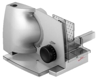 Tloušťka řezu je plynule nastavitelná až do cca 20 mm. Díky odnímatelnému posunu lze také odříznout větší kusy potravin.