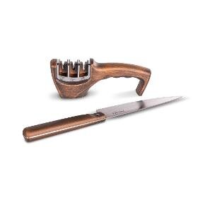 3stupňový brousek na nože vyroben z ABS plastů se soft úpravou a protiskluzovou základnou