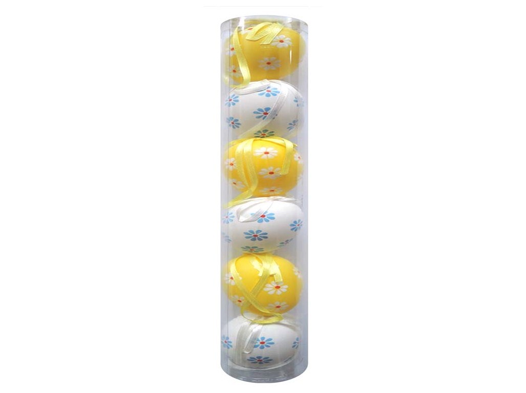 Kraslice 6 ks 60mm , s květinou, žlutá, bílá, mix v sáčku