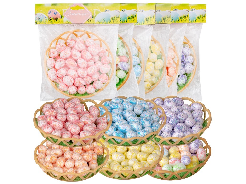 Kraslice plastové 50ks 18x23mm s glitrem v sáčku, mix barev