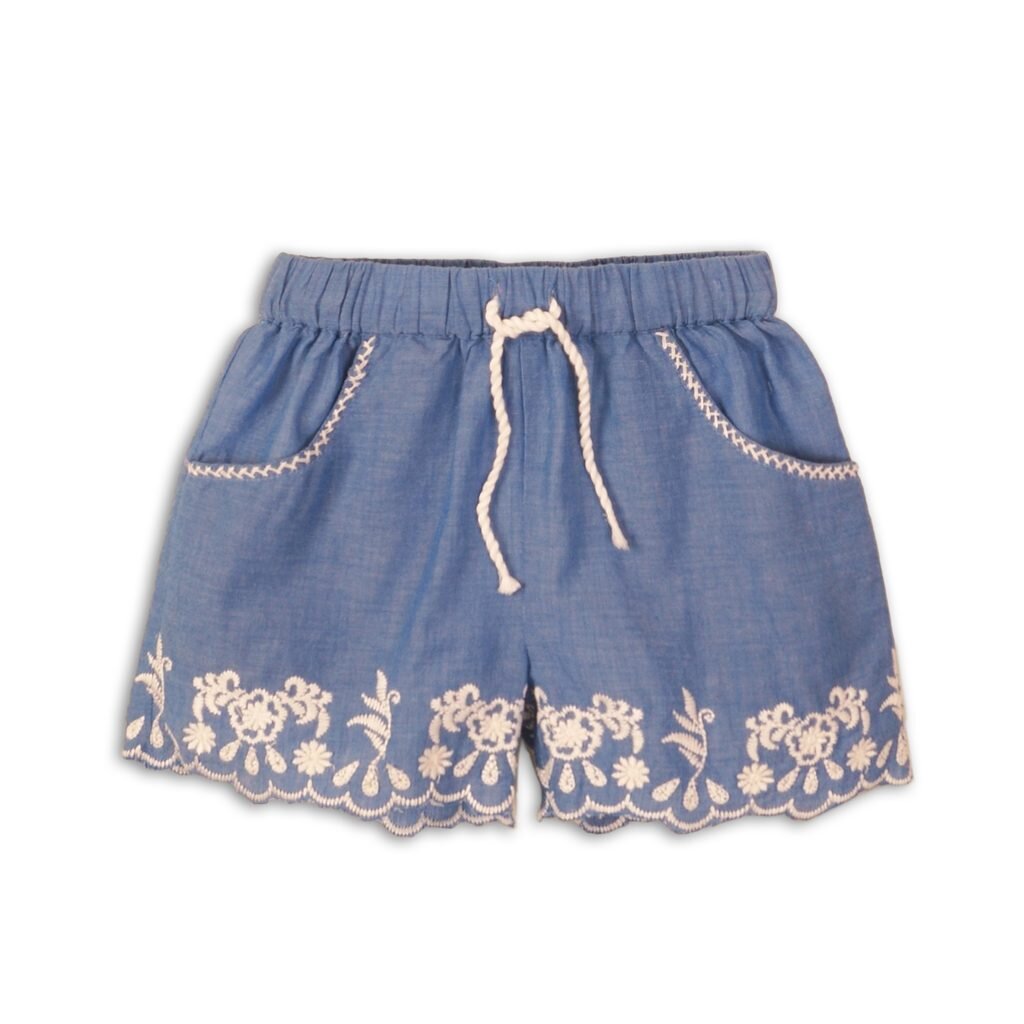 Kraťasy dívčí bavlněné vyšívané, Minoti, Picnic 5, modrá - 74/80