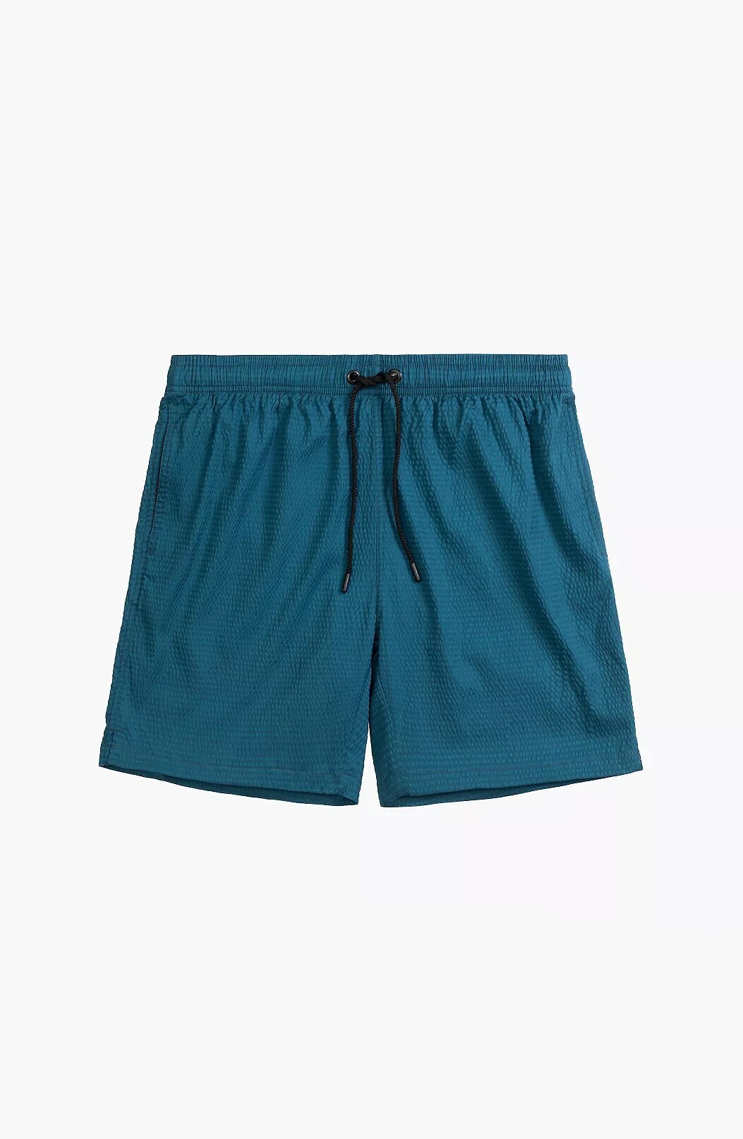 Szorty kąpielowe męskie- fakturowany materiał- wygodne i komfortowe w użytkowaniu- uniwersalna długość nogawki- w pasie troczek do regulacji wiązania- mocne rozciąganie- szybkoschnący poliester- po bokach kieszenie- z tyłu kieszonka na zamek- wewnątrz slipy z siateczki