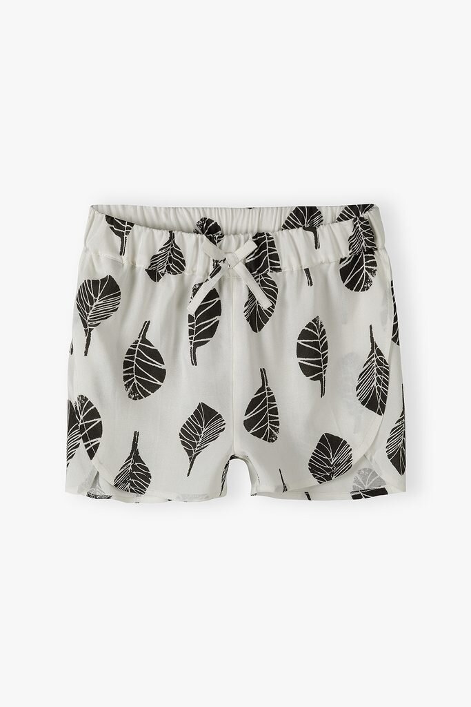 Dívčí kraťasy v pase na gumičku. V bílé barvě s černými listy. číst celé