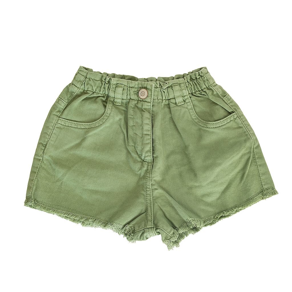 Osvěžte letní šatník těmito elegantními keprovými šortkami. Šortky jsou ušity z měkké lehké keprové tkaniny, v pase jsou elastické pro větší pohodlí a snadné oblékání, Vpředu mají zapínání na stříbrný knoflík. Stylizujte je s oblíbeným páskem pomocí praktických poutek v pase.