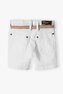 Tyto módní a stylové bavlněné kraťasy jsou ideální pro letní dny. Šortky klasického střihu jsou ušity z příjemného bílého denimu. Šortky mají vpředu zapínání na stříbrný knoflík pro snadné oblékání. Vzhled je doplněn praktickými poutky a páskem v pase, což znamená, že si dívka může k šortkám přidat pásek, který se hodí pro danou příležitost.