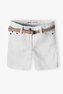 Tyto módní a stylové bavlněné kraťasy jsou ideální pro letní dny. Šortky klasického střihu jsou ušity z příjemného bílého denimu. Šortky mají vpředu zapínání na stříbrný knoflík pro snadné oblékání. Vzhled je doplněn praktickými poutky a páskem v pase, což znamená, že si dívka může k šortkám přidat pásek, který se hodí pro danou příležitost.