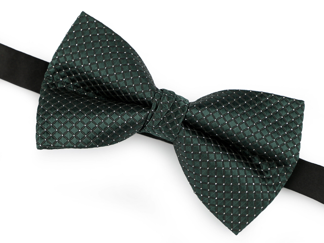 Elegantní společenský motýlek vyniká svým kvalitním zpracováním. Tkanina má kostičkovaný vzor se saténovým leskem, hodí se pro pány i dámy - unisex. Jemně se třpytí díky stříbrným mikro puntíkům mezi jednotlivými kostičkami.