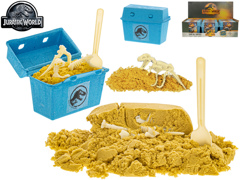 Jurský svět kostra dinosaura s pískem a lopatkou v papírové truhle 12ks v DBX