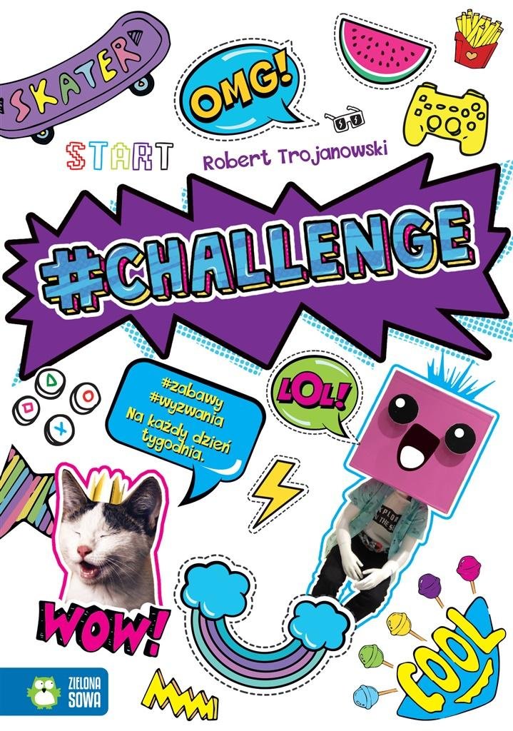 CHALLENGE! Podejmuj zwariowane i rozwijające kreatywność wyzwania! Challenge to zbiór wyzwań, dzięki którym nie będziesz się nudzić! Rodzina, przyjaciele, a nawet pies lub pies sąsiada będą też chcieli wziąć w nich udział! Co gdybyś podjął wyzwanie i obsługiwał przez cały dzień telefon tylko nosem lub łokciem? Albo robił wszystko baaardzo wooolnooo? A może cykał sobie selfie tylko w ten sposób, aby widoczne było pół twarzy? Challenge 100% bezpiecznej zabawy!