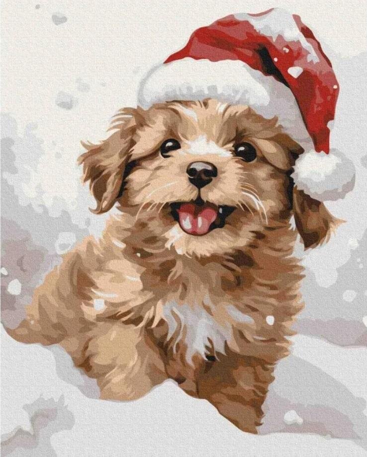 Malowanie po numerach - Śnieżny szczeniak 40x50cm