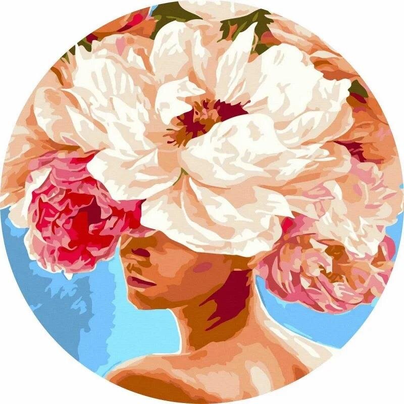 Malowanie po numerach okrągłe - Piwonie we włosach