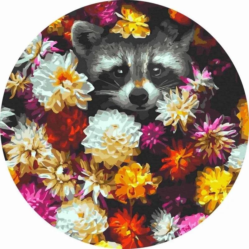 Malowanie po numerach okrągłe - Szop w kwiatach 40