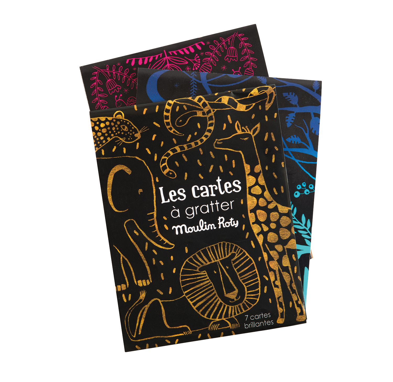 Sada obsahuje 7 černých karet a dřevěné pero. Děti perem vyškrabávají plochu a odhalují ukrytý obrázek v nádherných ilustracích Moulin Roty. Tato sada stimuluje dětskou představivost a kreativitu. Rozměry: 14 x 18 cm. Materiály: karton a dřevo. Vhodné od 3 let číst celé