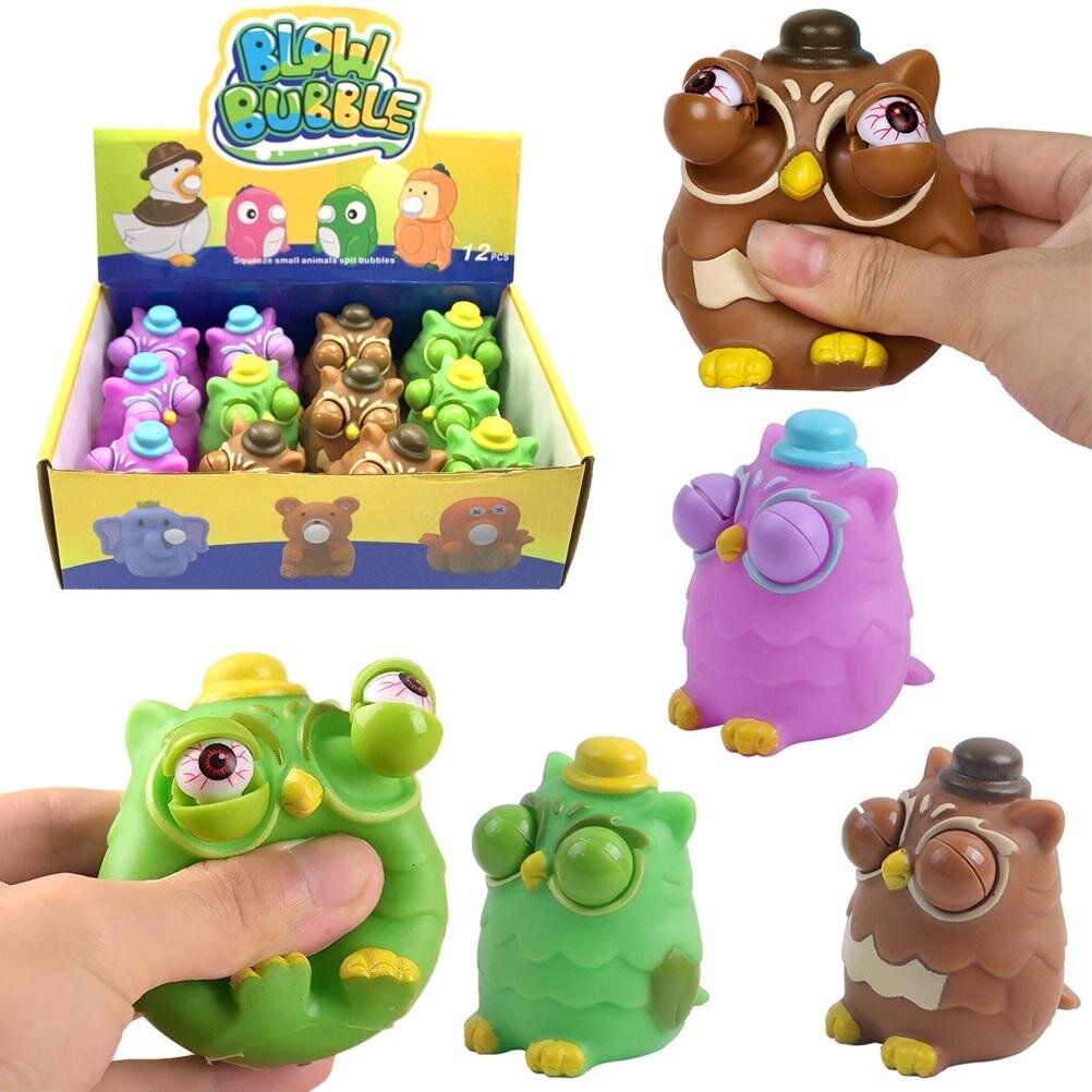 Gniotek w kształcie sowy, któremu po ściśnięciu wysuwają i otwierają się oczy. číst celé