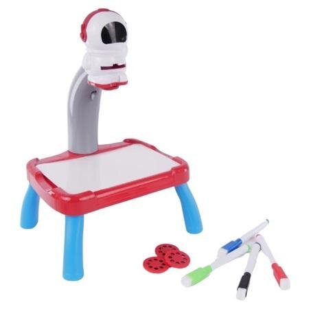 Ten unikalny stolik posiada wbudowany projektor, który umożliwia projekcję różnorodnych obrazów na powierzchni stolika. Dziecko może wybierać spośród wielu tematów, w tym motywów astronauty, które wprowadzą je w kosmiczną podróż pełną wyobraźni i kreatywności. Robot ma wygodny włącznik, służący do zapalenia światła, które stworzy odpowiednią atmosferę do twórczych eksploracji. Po włożeniu krążka ze slajdem, obrazy zostaną wyświetlone na podstawie projektora, dając dziecku możliwość odrysowywania ich w notesiku lub tworzenia bezpośrednio na podstawie.