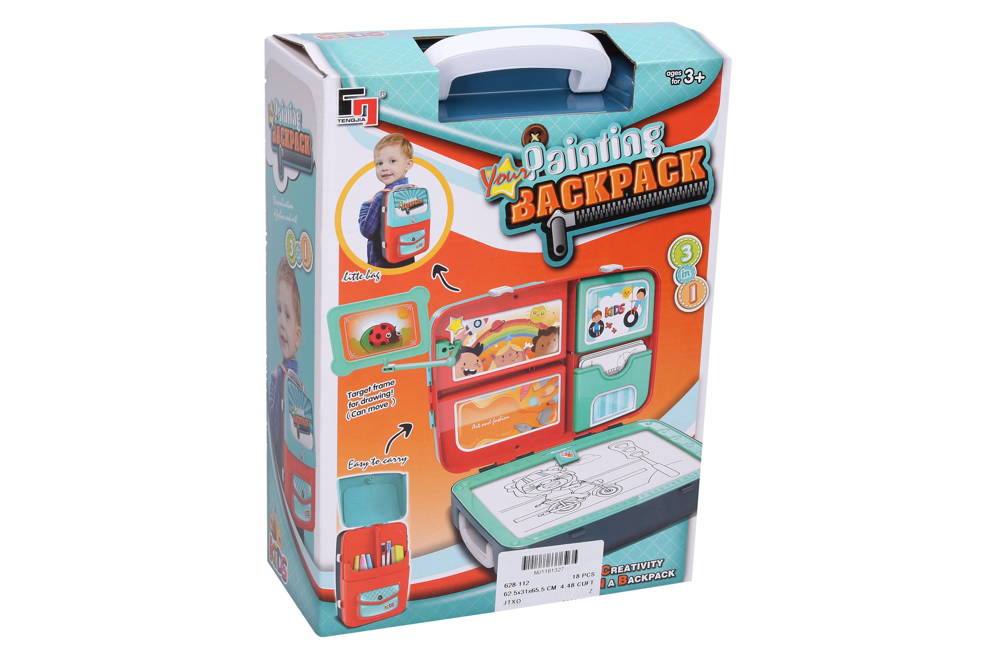Batoh kreativní. Velikost 28cm. Otevírací batoh, obsahuje otevíratelné přihrádky, kreslicí tabulku na mazací fixy a přichycení magnetek, druhou strana tabulky lze popsat křídou, magnetická čísla a písmenka, křídy, hubku na mazání, mazací fixy, popruhy na záda, nálepky na ozdobení batohu. číst celé
