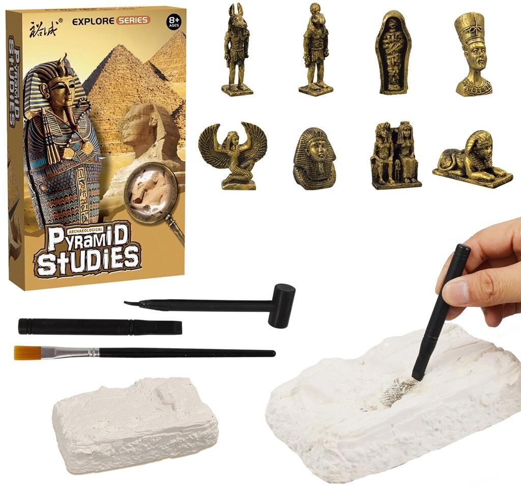 Zestaw zawiera gipsowy odlew z którego za pomocą narzędzi należy wydobyć artefakty, Świetny zestaw, który pozwoli dziecku poczuć się jak naukowiec archeolog.