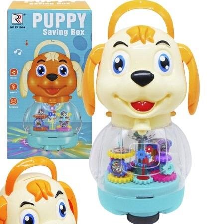 Nauka oszczędzania pieniędzy: Zabawka posiada specjalną dziurkę na pieniądze umieszczoną na głowie pieska, co zachęca dzieci do nauki oszczędzania pieniędzy. Głowę pieska można odkręcić, aby wyciągnąć oszczędności, co stanowi dodatkowy element edukacyjny i uczy dziecko odpowiedzialności finansowej już od najmłodszych lat.