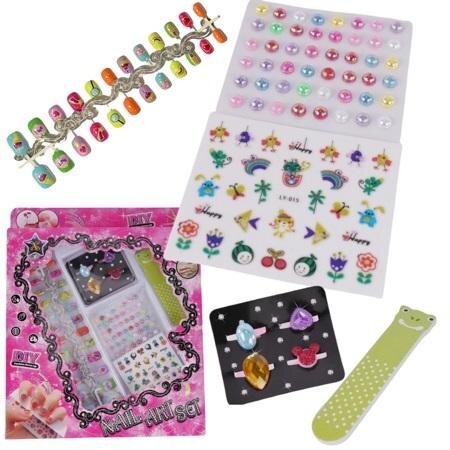 Ten zestaw urody to wspaniała i kreatywna rozrywka dla małej dziewczynki. Mała księżniczka będzie mogła samodzielnie przykleić naklejki na paznokcie lub twarz, ozdobić dłonie różnymi pierścionkami oraz wystylizować paznokcie za pomocą dołączonego delikatnego pilniczka.