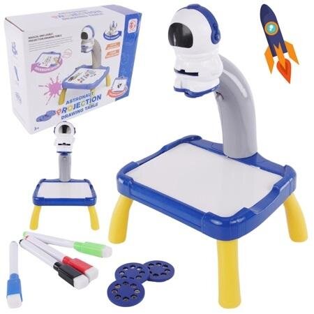 Ten unikalny stolik posiada wbudowany projektor, który umożliwia projekcję różnorodnych obrazów na powierzchni stolika. Dziecko może wybierać spośród wielu tematów, w tym motywów astronauty, które wprowadzą je w kosmiczną podróż pełną wyobraźni i kreatywności. Robot ma wygodny włącznik, służący do zapalenia światła, które stworzy odpowiednią atmosferę do twórczych eksploracji. Po włożeniu krążka ze slajdem, obrazy zostaną wyświetlone na podstawie projektora, dając dziecku możliwość odrysowywania ich w notesiku lub tworzenia bezpośrednio na podstawie.