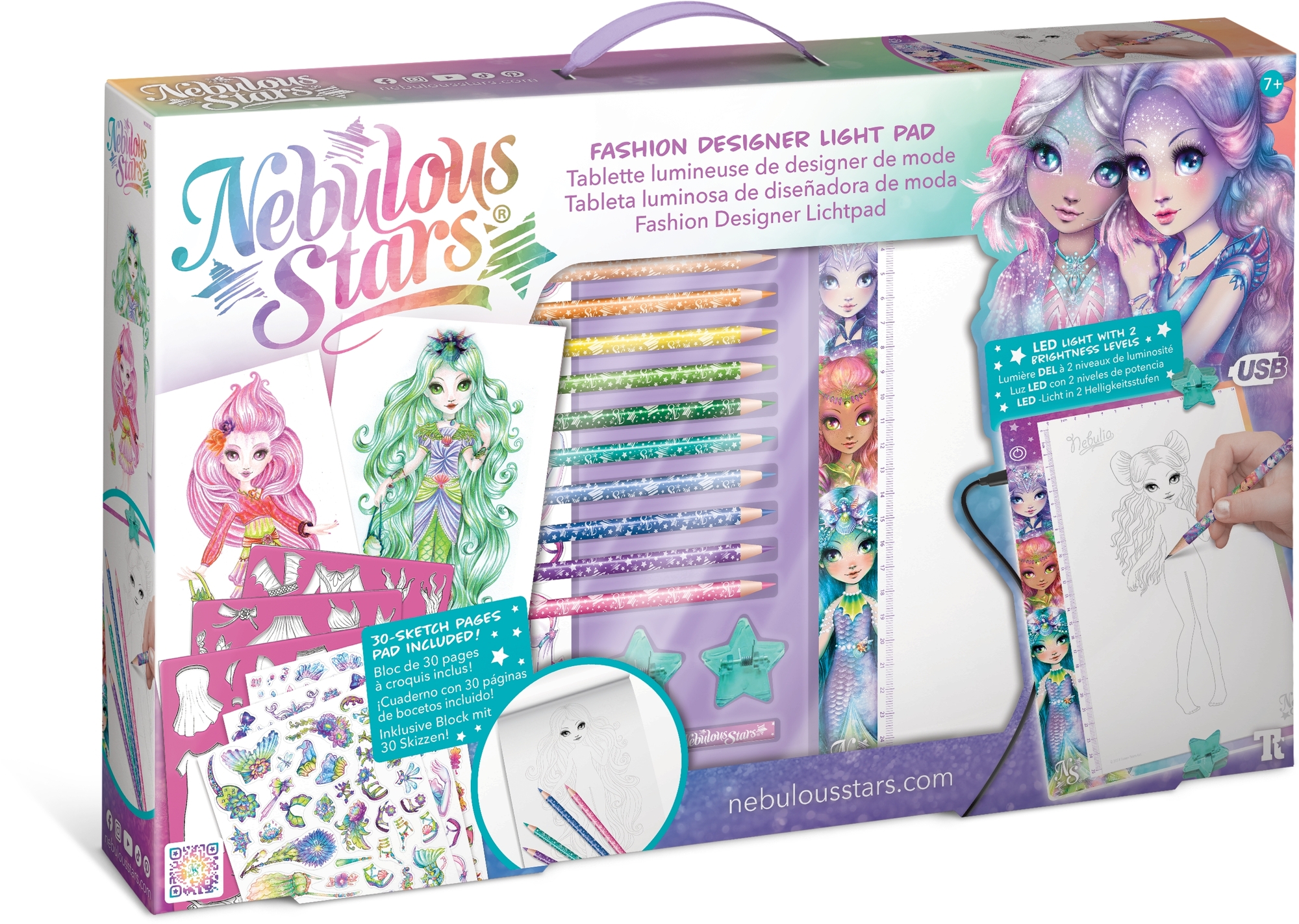 Nebulous Stars Návrhářská podsvícená tabulka. Plocha tabulky 14x25 cm. 2 úrovně jasu. Obsah - podsvícená tabulka, usb kabel, 11 pastelek, 30 šablon, 2 klipy. číst celé
