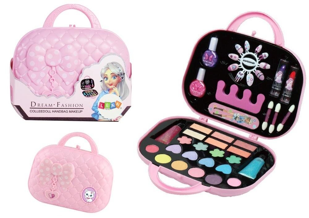 Zestaw Do Makijażu i Paznokci Kosmetyczka Torebka Różowa Torebka kosmetyków dla dzieci to elegancka zabawka w pięknym różowym kolorze, która wprowadza maluchy w fascynujący świat makijażu i pielęgnacji. Jej urokliwy wygląd sprawia, że jest to świetny dodatek do każdej zabawy, a także doskonały prezent, który łączy estetykę z kreatywną zabawą. Po otwarciu torebki, dzieci odkrywają bogaty zestaw kosmetyków, który obejmuje różnorodne cienie do powiek, brokaty, lakiery do paznokci i inne akcesoria. Każdy z tych elementów został starannie zaprojektowany z myślą o bezpieczeństwie i wygodzie najmłodszych użytkowników. Kosmetyki są łatwe w użyciu i doskonale dopasowane do dziecięcych rączek, co pozwala na bezpieczne i satysfakcjonujące eksperymentowanie z kolorami i stylizacjami. Zabawa z torebką kosmetyków wspiera rozwój wyobraźni i kreatywności, dając dzieciom możliwość tworzenia własnych, unikalnych stylizacji. Ta interaktywna zabawa nie tylko rozwija zdolności artystyczne, ale także pomaga w budowaniu poczucia piękna i estetyki. Torebka kosmetyków dla dzieci to także doskonały sposób na naukę podstaw dbałości o siebie, przy jednoczesnym rozwijaniu zdolności manualnych i koordynacji. Dzięki swojemu eleganckiemu wyglądowi i bogatemu wyposażeniu, torebka kosmetyków stanie się ulubioną zabawką każdego dziecka, wprowadzając je w świat urody w sposób bezpieczny, kreatywny i pełen zabawy. Wymiary torebki: 19cm x 19cm x 5cm Posiada certyfikat CE, ponadto jest zgodny z normą EN71. Przeznaczony dla dzieci powyżej 3 roku życia.