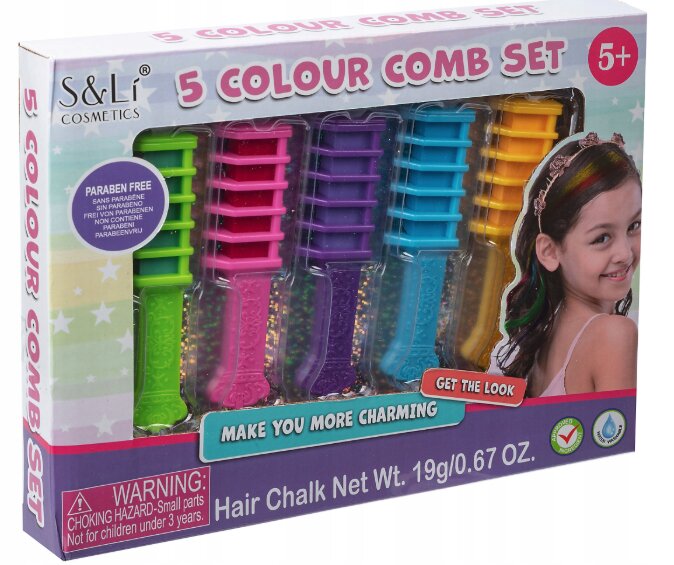 Tato sada obsahuje 5 kusů barevných kříd, která jsou navržena tak, aby se snadno aplikovala a zároveň byla vhodná pro děti od 5 let. Díky nim si vaši nejmenší mohou hrát s barvami bez obav z náročného mytí nebo poškození vlasů.