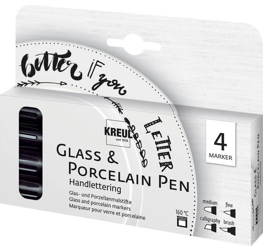 Barva na vodní bázi je vhodná nejen pro porcelán, ale také pro sklo, glazovanou keramiku a kov. Po správném vypálení ve vaší troubě bude dekorace trvanlivá a odolná, dokonce je možné ji mýt v myčce. Díky speciálnímu fixu se štětcem můžete ihned začít psát nebo malovat bez nutnosti třepání a pumpování, což usnadňuje kreativní práci.