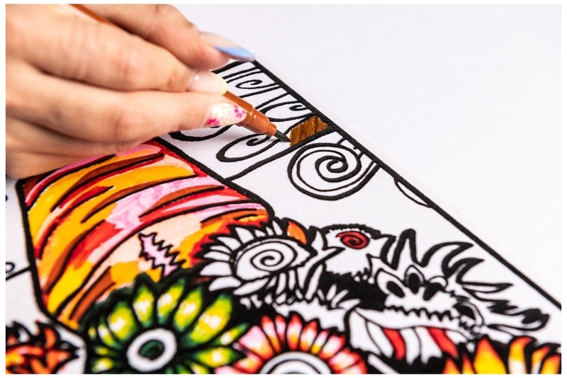 Wyjątkowa kolorowanka o rozmiarze 47 x 35 cm Colorvelvet w zestawie z 12 flamastrami Carioca.