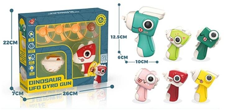 W zestawie: pistolet 12 cm, bączek, 4 śmigła funkcje: po nakręceniu bączka i naciśnięciu przycisku pistoletu bączek zaczyna się kręcić na podłodze, światło w bączku, śmigła po nakręceniu i wystrzeleniu latają, 1 śmigło posiada światło, 6 modeli do wyboru, wym. opak 26 x 22 x 7 cm, baterie...