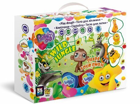 Zestaw ciastoliny z serii Dżungla dedykowany jest wszystkim maluchom, które uwielbiają przeróżne zabawy kreatywne. Razem z kolorową masą plastyczną mali artyści wyczarują dzikie zwierzaki w formacie 3D, które żyją w prawdziwej dżungli. Ciastolina jest gotowa do użycia bezpośrednio po wyjęciu z opakowania. Po schowaniu masy z powrotem do pojemnika i szczelnym zamknięciu, będzie można używać jej ponownie. Jeśli zostawimy nasze prace na biurku czy stoliku to po 2,3 godzinach ciastolinowe dzieło zastygnie. Zalety:zabawa z ciastoliną ćwiczy zdolności manualne dzieci,pobudza motorykę rączek dziecka,rozwija zmysły, wyobraźnię,uczy precyzji,zestaw sprawdzi się podczas zajęć antystresowych,Zawartość opakowania:3 foremki niezbędne do stworzenia małpki, lemura bądź pieska,2 foremki niezbędne do stworzenia przeróżnych symboli,2 małe foremki w kształcie kwadracika, trójkąta lub gwiazdki itp.,wałek do rozwałkowania ciastoliny,łopatka oraz inne przybory,para oczu,2 kubeczki na ciastolinę,20 woreczków ciastoliny w różnych kolorach(kolory można łączyć ze sobą, tworząc oryginalny mix),kartonowa podkładka do zabawy,instrukcja.Cechy:każdy kolor ciastoliny znajduje się w woreczku,ciastolina jest miękka, elastyczna i łatwa do zabawy,masa plastyczna wyróżnia się przyjemnym zapachem,jeden woreczek zawiera 560g masy,zastosowano 100% naturalnych składników,nie brudzi rąk,wymiary opakowania: 30,5x22,3x7,6cm,wiek: 3+.