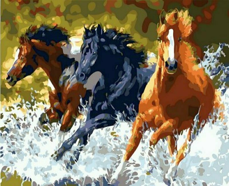 Malowanie po numerach 40x50cm Konie galopujące w wodzie 1008911