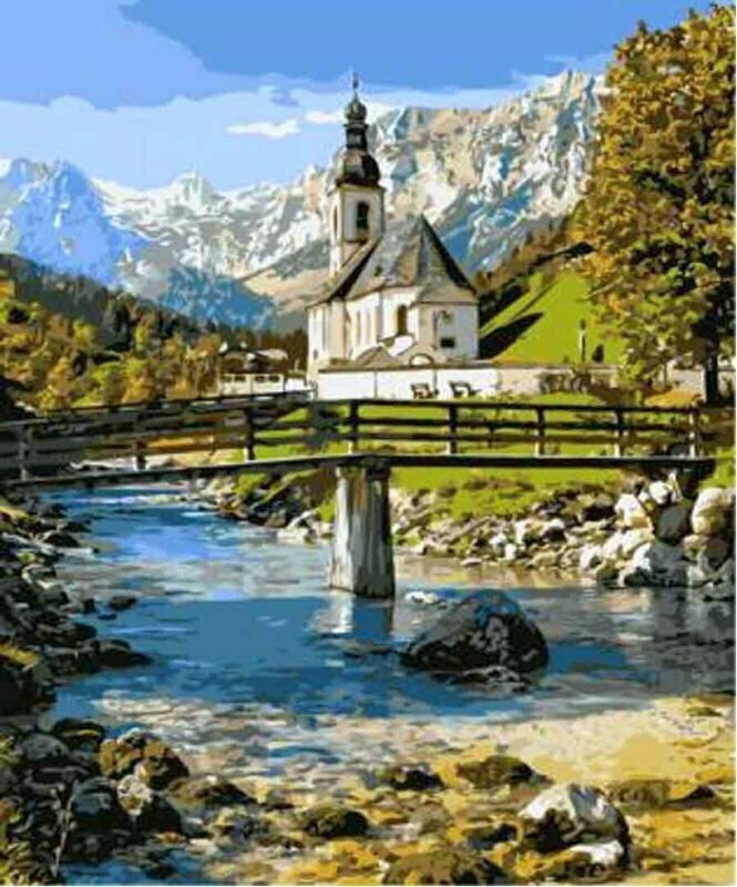 Malowanie po numerach Kościół nad rzeką 40x50cm 1006815