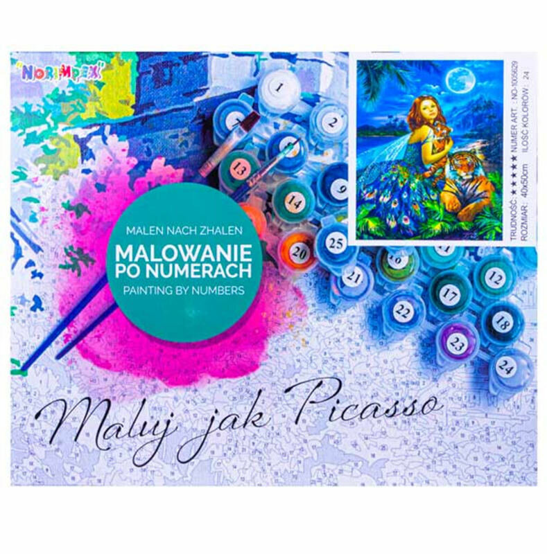 Malowanie po numerach to fascynujące i twórcze doświadczenie, które nie tylko rozbudza kreatywność, ale także doskonali umiejętności manualne. Na czystym płótnie ukryty jest wyjątkowy wzór, podzielony na obszary oznaczone cyframi. Każda cyfra odpowiada określonemu kolorowi farby, co pozwala na precyzyjne odwzorowanie detali i stworzenie imponującego obrazu. Pojemniki z farbą, odpowiednio oznaczone zgodnie z numeracją na płótnie, ułatwiają dokładne odwzorowanie kolorów i sprawiają, że każdy numerowany obszar staje się fragmentem większej, harmonijnej całości. Warto zacząć od najjaśniejszych kolorów, stopniowo przechodząc do coraz ciemniejszych odcieni. W przypadku błędów można je korygować, używając ciemniejszych kolorów do podkreślenia konturów. Gdy skończysz wypełniać poszczególne obszary, możesz dodać detale według własnego pomysłu. Stworzony przez Ciebie obraz po zakończeniu procesu malowania po numerach staje się nie tylko wyrazem indywidualnej twórczości, ale również piękną dekoracją pokoju.Zawartość zestawu:- płótno naturalne z wydrukowanym wzorem oraz numerkami na drewnianej ramie,- farby akrylowe,- 3 pędzelki nylonowe,- akcesoria do zawieszenia obrazu (zawieszki i gwoździe).Trudność: 5/5Wymiary produktu: 40x50cmWymiary opakowania: 51x41x2cmWiek: 7+
