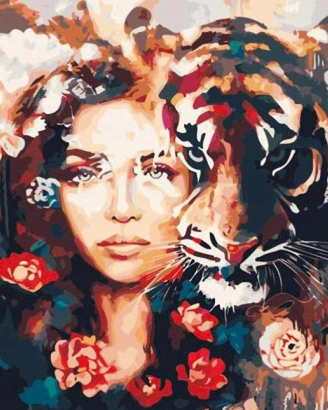 Malowanie po numerach Kobieta z tygrysem 50x40cm 1007474