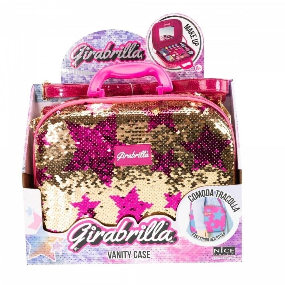Girabrilla walizka cekinowa z lusterkiem i z wyposażeniem make up.