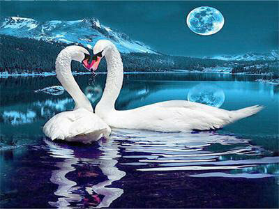 Diamentowa mozaika łabędzie w blasku księżyca 60762