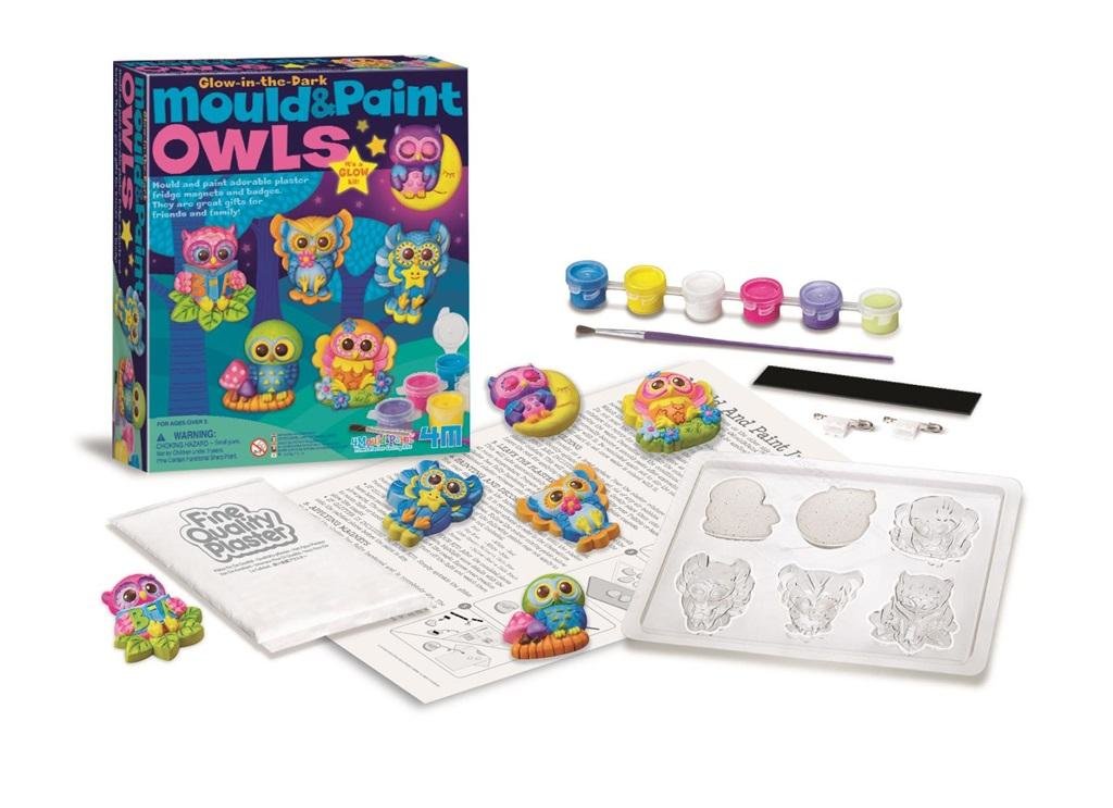 Formuj i maluj gipsowe magnesy na lodówkę lub broszki świecące w ciemności w kształcie uroczych sów.Zawartość:proszek gipsowyforemka do odlania 6 sówfarbyfarbka świecąca w ciemnościpędzelekmagnesy i agrafki