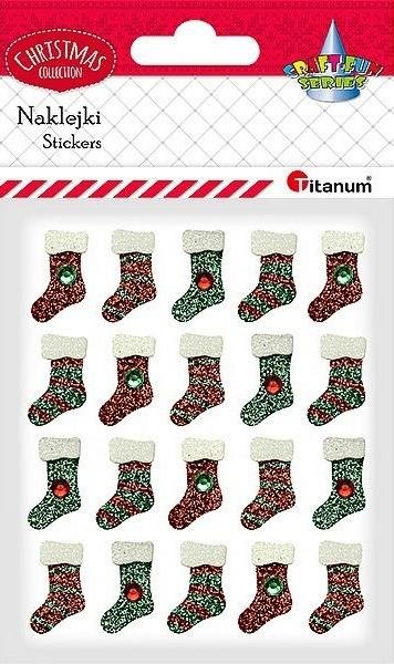 Naklejki dekoracyjne wykonane z papieru klejonego warstwowo, dzięki czemu mają efekt 3D. Wzór: skarpety świąteczne. Kolor: czerwono-zielono-białe. Wymiary: 15 x 25 mm. Blister: 20 szt. číst celé