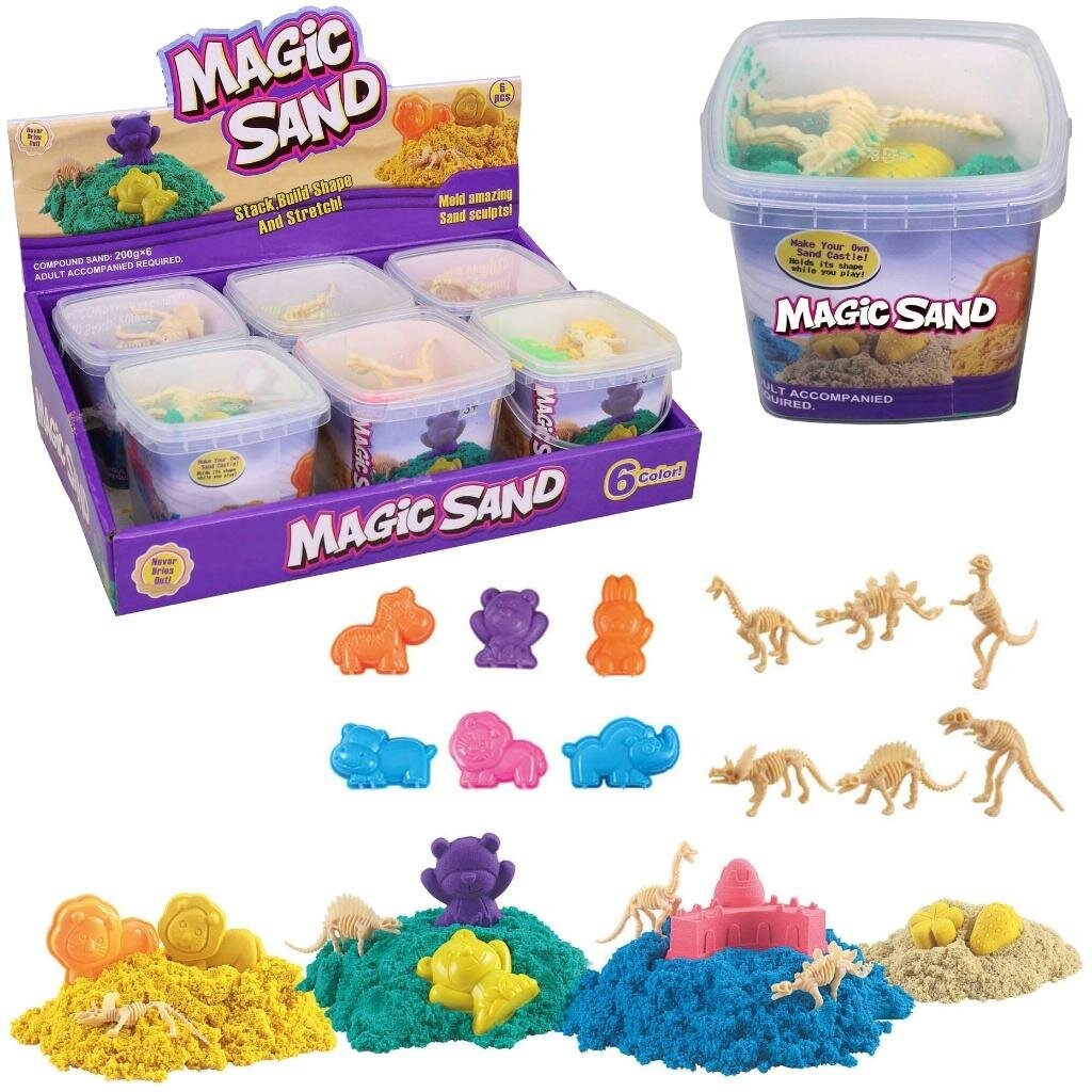 Magiczny Piasek Kinetyczny - Kreatywna Zabawa Bez Końca! Odkryj niezwykły świat Magicznego Piasku kinetycznego! Ten innowacyjny piasek zapewnia fascynującą i sensoryczną zabawę, która pobudza wyobraźnię i rozwija zdolności manualne dzieci (i nie tylko!). Można go formować, ugniatać, ciąć i modelować, tworząc nieskończoną ilość kształtów i budowli. Cechy produktu: Kinetyczna formuła: Magiczny Piasek zachowuje się jak mokry piasek, ale nigdy nie wysycha i nie rozsypuje się tak łatwo. Przepływa przez palce, dając niesamowite wrażenia sensoryczne. Łatwe formowanie i modelowanie: Doskonale utrzymuje nadany kształt, umożliwiając tworzenie szczegółowych budowli, zamków, zwierzątek i wszystkiego, co tylko podpowie wyobraźnia. 6 żywych kolorów: Zestaw dostępny jest w 6 atrakcyjnych kolorach, które można łączyć i mieszać, tworząc jeszcze ciekawsze efekty wizualne. Dodatkowe akcesoria : Zestawy mogą zawierać foremki w kształcie zwierzątek, dinozaurów, zamków i wiele innych, co dodatkowo urozmaica zabawę. Niektóre zestawy zawierają również plastikowy pojemnik do przechowywania piasku. Pobudza kreatywność i wyobraźnię: Zabawa Magiczny Piaskiem rozwija kreatywność, wyobraźnię przestrzenną i zdolności manualne. Właściwości sensoryczne: Ugniatanie i formowanie piasku działa relaksująco i terapeutycznie, stymulując zmysł dotyku. Bezpieczny i nietoksyczny: Wykonany z bezpiecznych i nietoksycznych materiałów, przyjaznych dla dzieci. Łatwe sprzątanie: Dzięki swojej kinetycznej formule, piasek nie rozsypuje się tak łatwo i łatwo go zebrać. Wielkość : 8x7x8 Magiczny Piasek kinetyczny to idealna zabawka dla dzieci w różnym wieku. Zapewnia nie tylko świetną zabawę, ale także wspomaga rozwój sensoryczny i kreatywność. Dostępny w różnych zestawach i kolorach, idealnie sprawdzi się jako prezent!