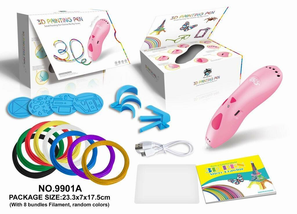 Długopis 3D to magiczny gadżet dla każdego, za pomocą którego możemy tworzyć różne unikalne figury. Urządzenie przypominające długopis w rzeczywistości jest miniaturową drukarką 3D zasilaną na kabel USB. Długopis jest wygodny i łatwy w obsłudze dla osób praworęcznych i leworęcznych. Miga na czerwono, gdy się nagrzewa, a na zielono, gdy jest gotowy do użycia. Długopis posiada przycisk kontrolujący prędkość wyjściową filamentu. Aby rozpocząć nim tworzenie, wystarczy włożyć specjalny filament w wybranym kolorze, który jest podgrzewany wewnątrz urządzenia (dzięki temu nabiera właściwości plastycznych). Po szybkim wyschnięciu staje się on stabilny. Bardzo niska temperatura, nie uszkadza dłoni. Do długopisu należy używać materiału PCL o grubości 1,75 mm. Produkt doskonale rozwija wyobraźnię, kreatywność, myślenie przestrzenne i zdolności manualne. Ten zestaw to doskonały pomysł dla każdego, kto lubi rysować i tworzyć. Idealny nie tylko dla dzieci, ale też dla dorosłych.Zawartość:- 1 długopis 3D,- 8 wiązek filamentu w różnych kolorach,- 1 kabel USB do ładowania,- 1 mała podkładka,- 1 metalowy patyczek do czyszczenia,- 4 arkusze form,- 6 różnych podstawek,- instrukcja.Wymiary opakowania: 23x17,5x7cmWiek: 6+