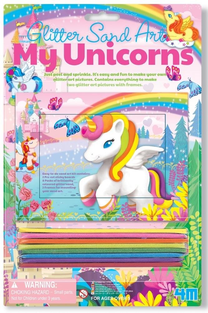 Jak zrobić niesamowite dzieło sztuki? Po prostu zeskrob wierzchnią warstwę i posyp obrazek piaskiem! Z zestawem do malowania piaskiem tworzenie własnych obrazów z piasku jest łatwe i przyjemne. Zestaw zawiera wszystko, aby wykonać dwa obrazki w ramkach. Zestaw zawiera 2 przycięte obrazki z klejącą stroną (11 cm x 16 cm), 8 paczek błyszczącego piasku w błyszczącym kolorze, 2 ramki do wyeksponowania prac. Zestaw jest zapakowany w wygodny blister. Wiek: 5+.